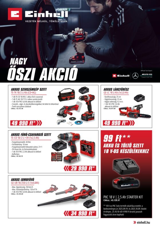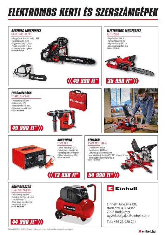 Ne maradj le az Einhell Nagy Őszi Akciójáról, ami 2025. november 14-ig, illetve a készlet erejéig érvényes!